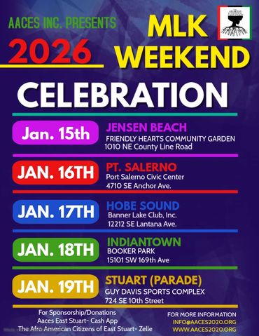 Aaces has partnered with the City of Stuart to host the annual Juneteenth Freedom Festival. A day filled with learning and educating, the community about the day our ancestors were "FREE".